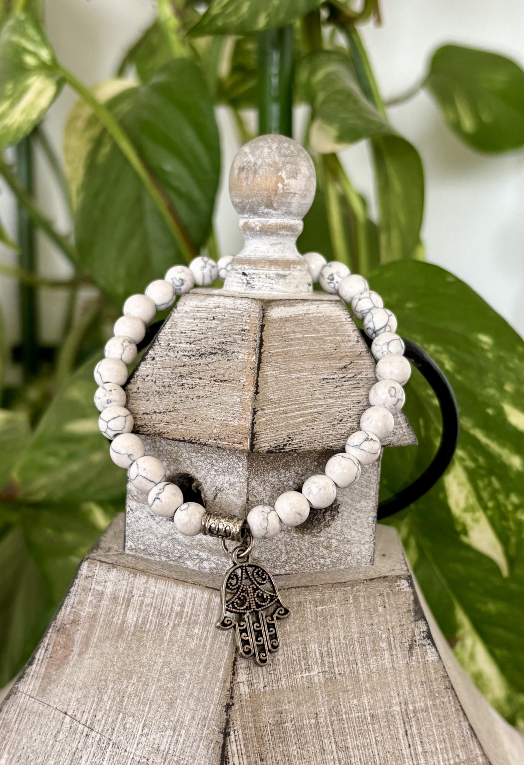 La pulsera de howlita es una compañera perfecta para aquietar la mente y bajar el ritmo interno. Conocida como la piedra de la serenidad, ayuda a soltar la tensión emocional acumulada, favoreciendo la paciencia, la claridad mental y un estado de tranquilidad sostenida.