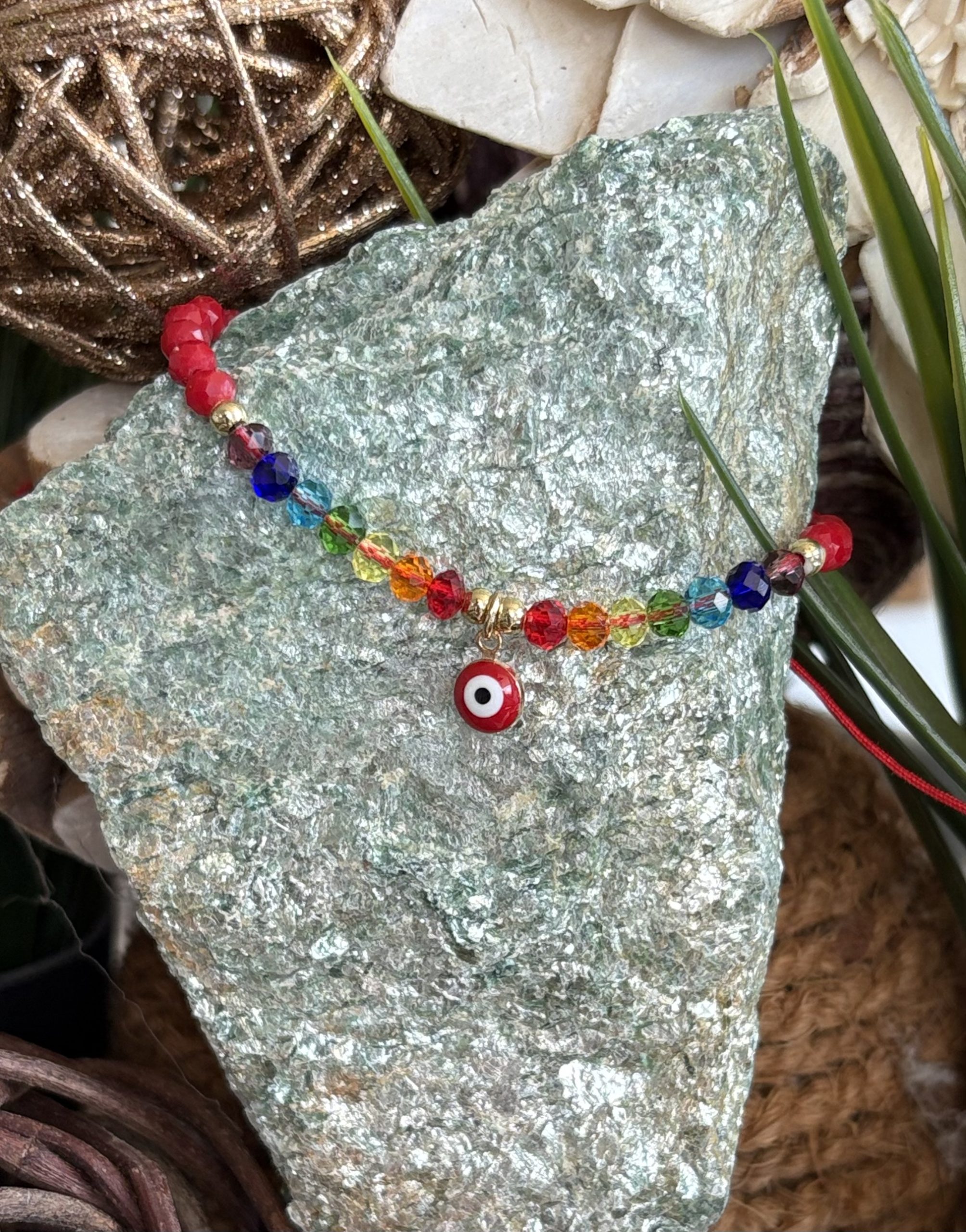 Pulsera Hilo Rojo 7 Chakras con Ojo Rojo