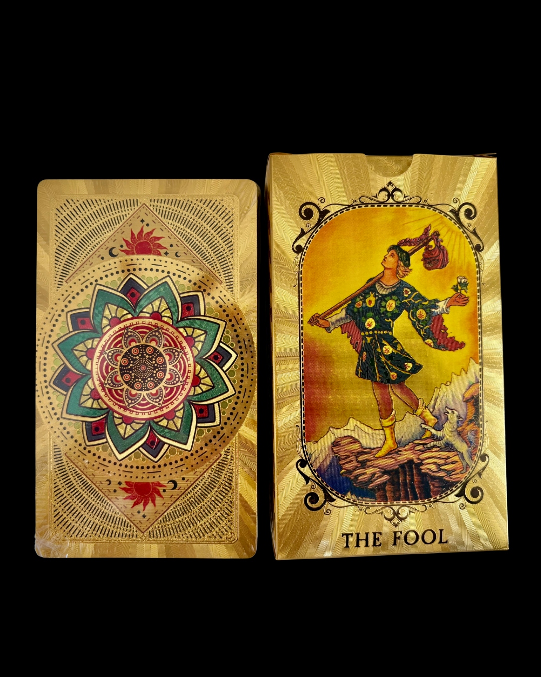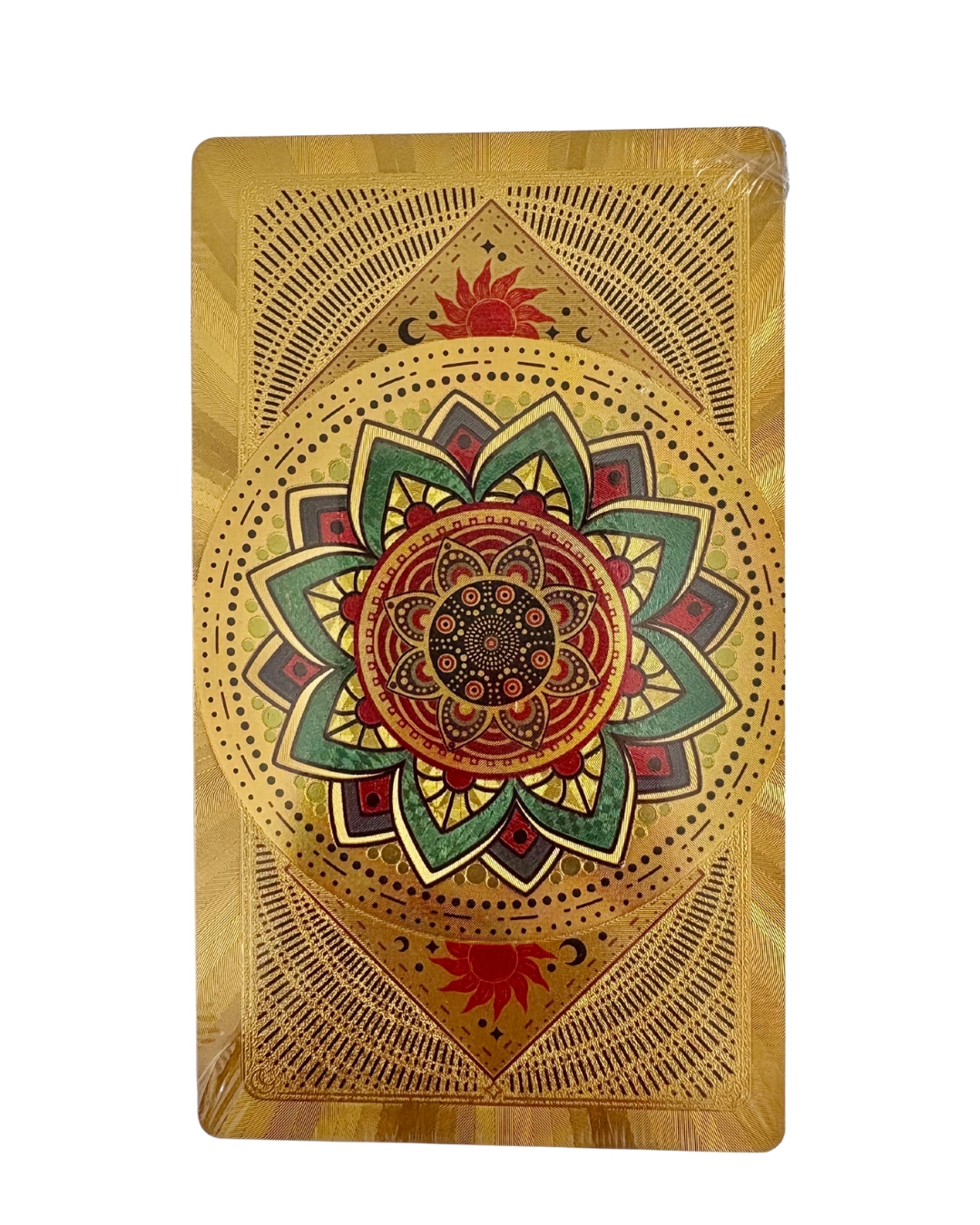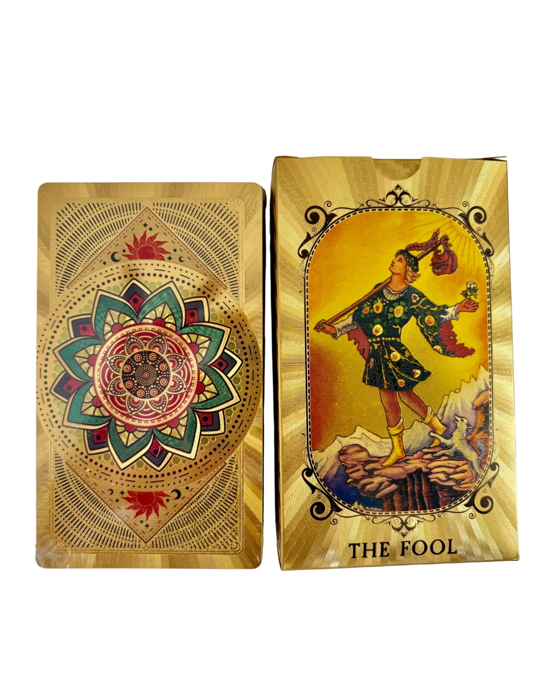Una versión única del tarot clásico con acabado dorado y reverso de mandala, diseñada para elevar tu energía, armonizar tus lecturas y potenciar tu conexión espiritual.